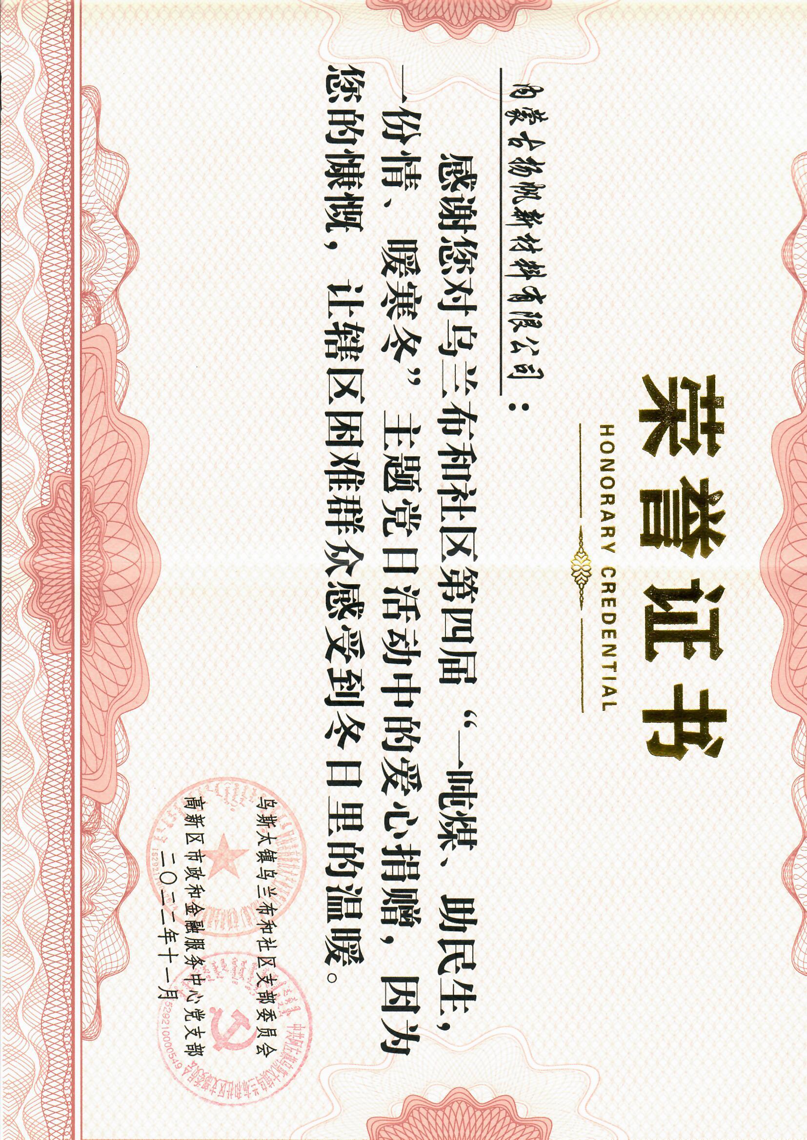 捐贈儀式上,烏蘭布和社區(qū)工作人員表示,各企業(yè)“暖心煤”不僅僅溫暖了社區(qū)干部群眾的心,也切實解決了困難群眾和環(huán)衛(wèi)工人的“燃煤”之急,讓這個寒冷的冬天溫暖加倍,暖身又暖心。隨后,社區(qū)代表們?yōu)閻坌钠髽I(yè)頒發(fā)證書,以此來表達對駐地企業(yè)暖心之舉的感謝。