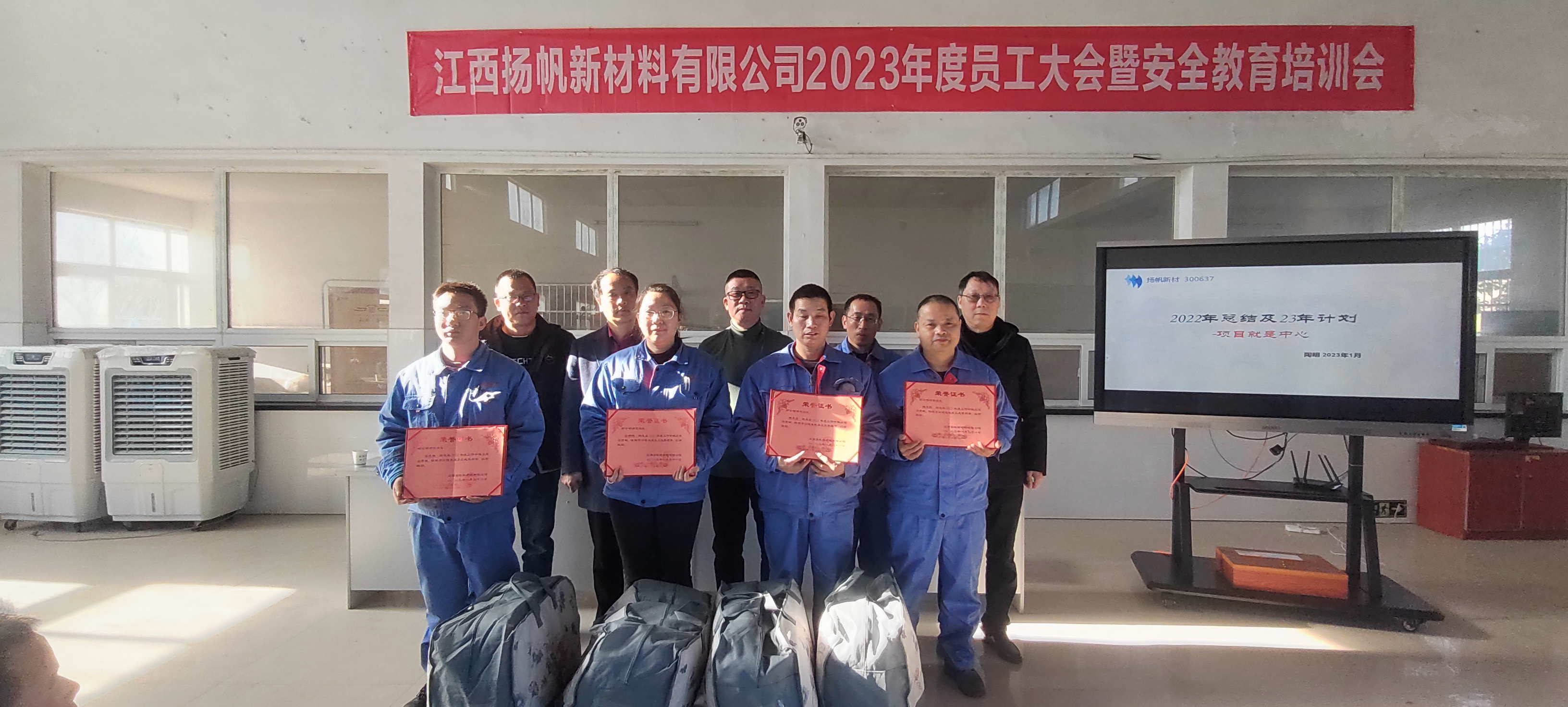 1月31日,揚(yáng)帆新材上虞生產(chǎn)基地召開2023年度職工大會。