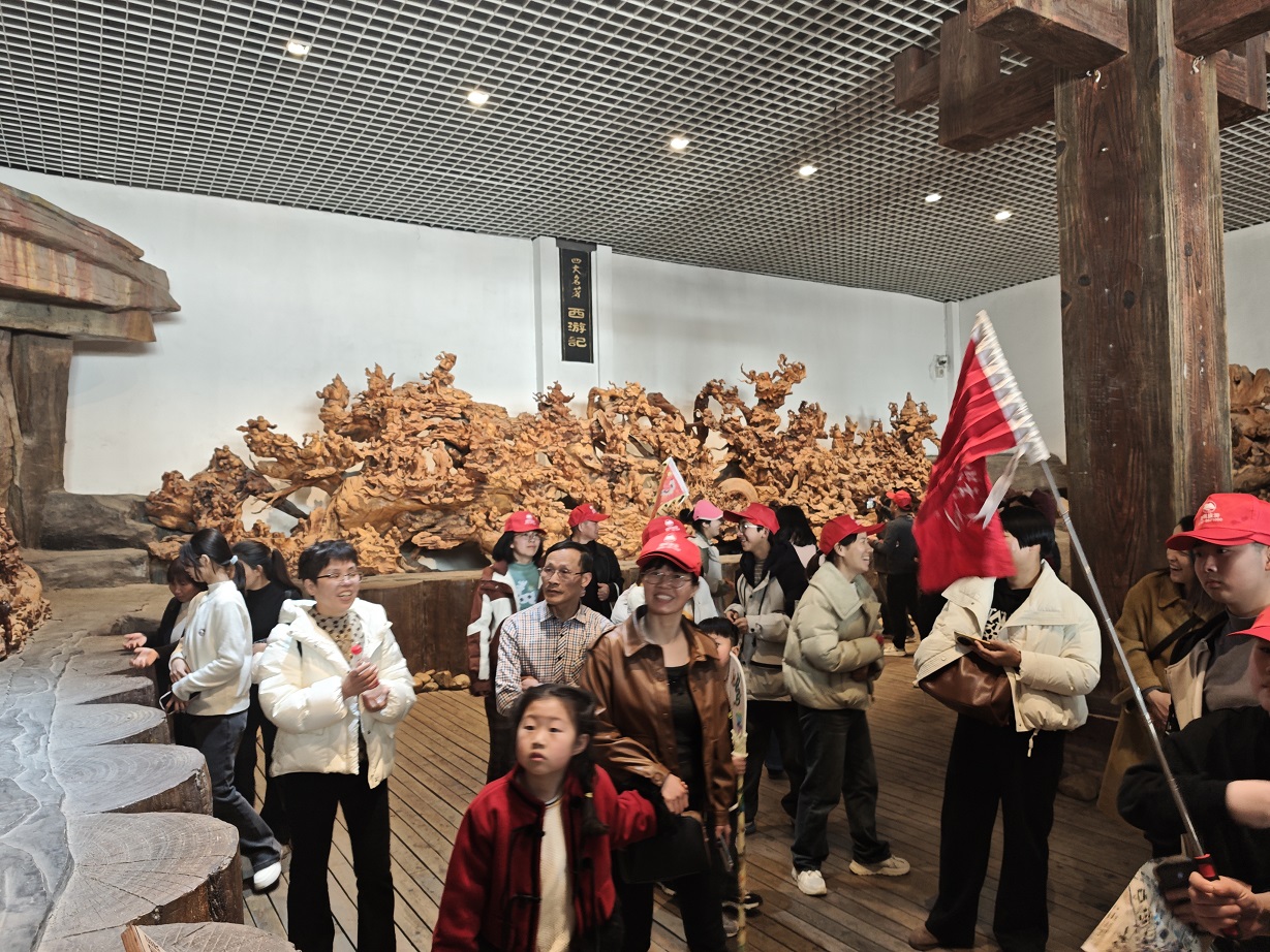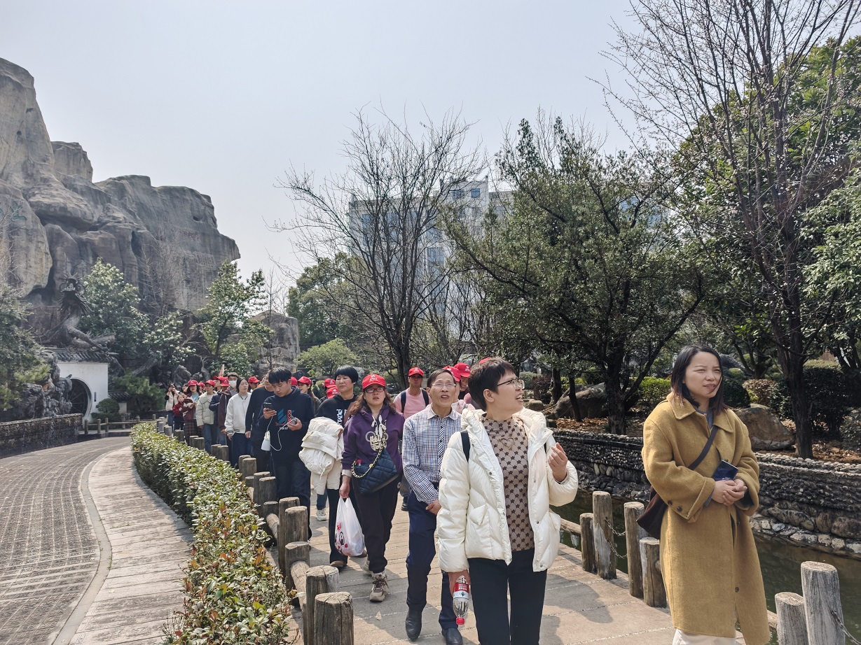此次出游目的地為安徽太湖縣五千年文博園。抵達景區后,大家迫不及待地進入文博園,跟著導游的講解徜徉在五千年燦爛文化中:尋根問祖文化墻、摩崖瀑布、中華孝道園、中華漢字龍見證古典文化創意;“孔子列國行”、“老子天下第一”、“釋迦牟尼臥佛”見證儒、道、佛“三教并流”的和諧文化;1500米巨幅歷史長卷、秦始皇塑像群、茶馬古道,五千年根雕藝術館——上千件5噸重根雕讓大家感嘆化腐朽為神奇的根雕藝術,萬佛塔、華夏愛情文化園、中華百工坊、百年民俗館、四大名著文化園再現歷史文化的千年滄?!黄凇⒍趦蓚€園內景點錯落有致,它們濃縮著中華五千年文化的精髓,每一塊磚瓦、每一處雕刻,都仿佛在訴說著往昔的故事,吸引著大家紛紛駐足觀賞、拍照留念,活動在大家無數次的贊美中愉快結束!