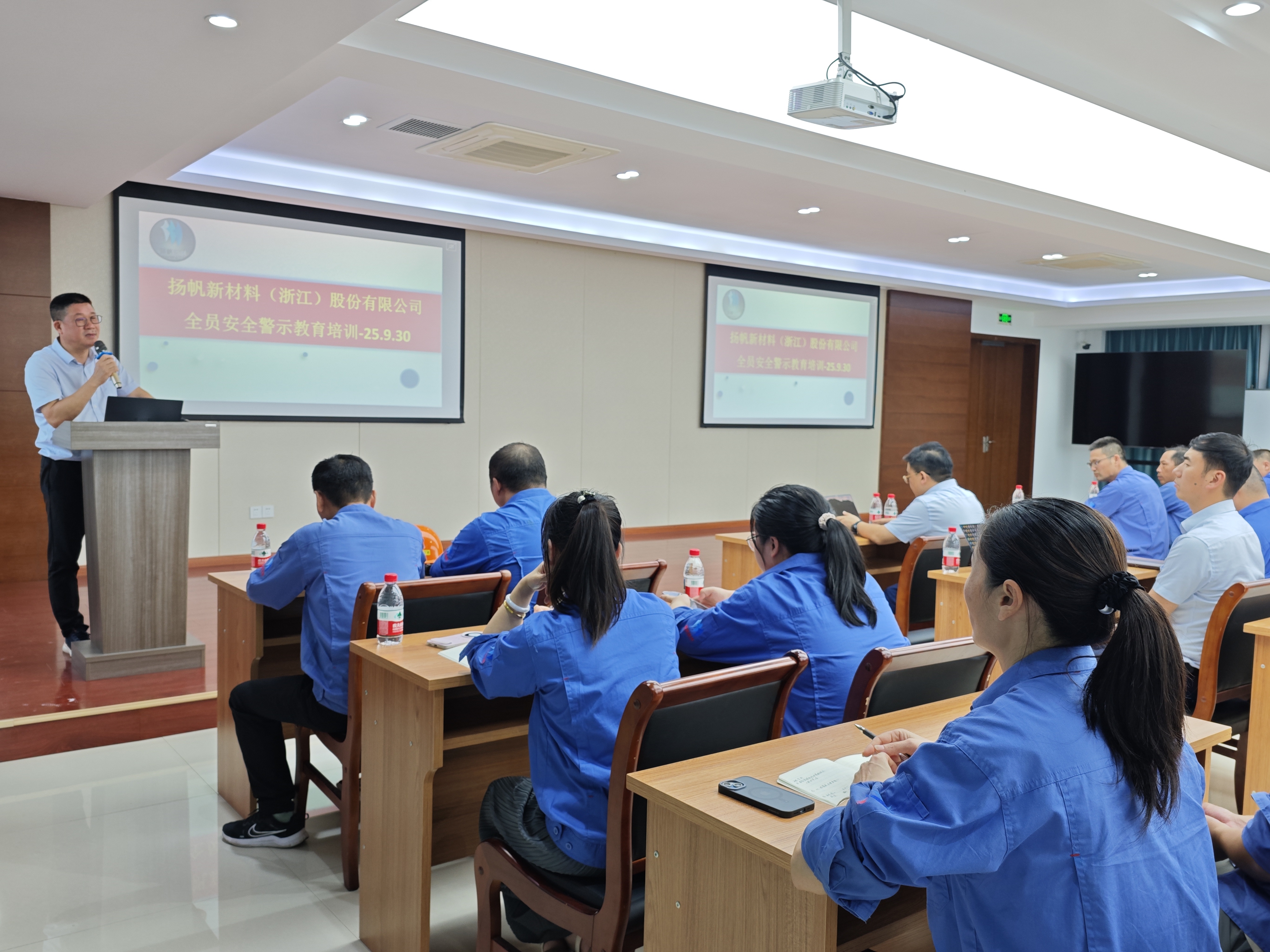 9月30日下午,揚帆新材料(浙江)股份有限公司在研究院三樓會議室組織開展了全員安全警示教育培訓(xùn)活動。此次培訓(xùn)由環(huán)安總監(jiān)舒國棟主持,董事長樊彬、總裁陶明出席并作出重要指示,公司全體員工參加培訓(xùn)。
