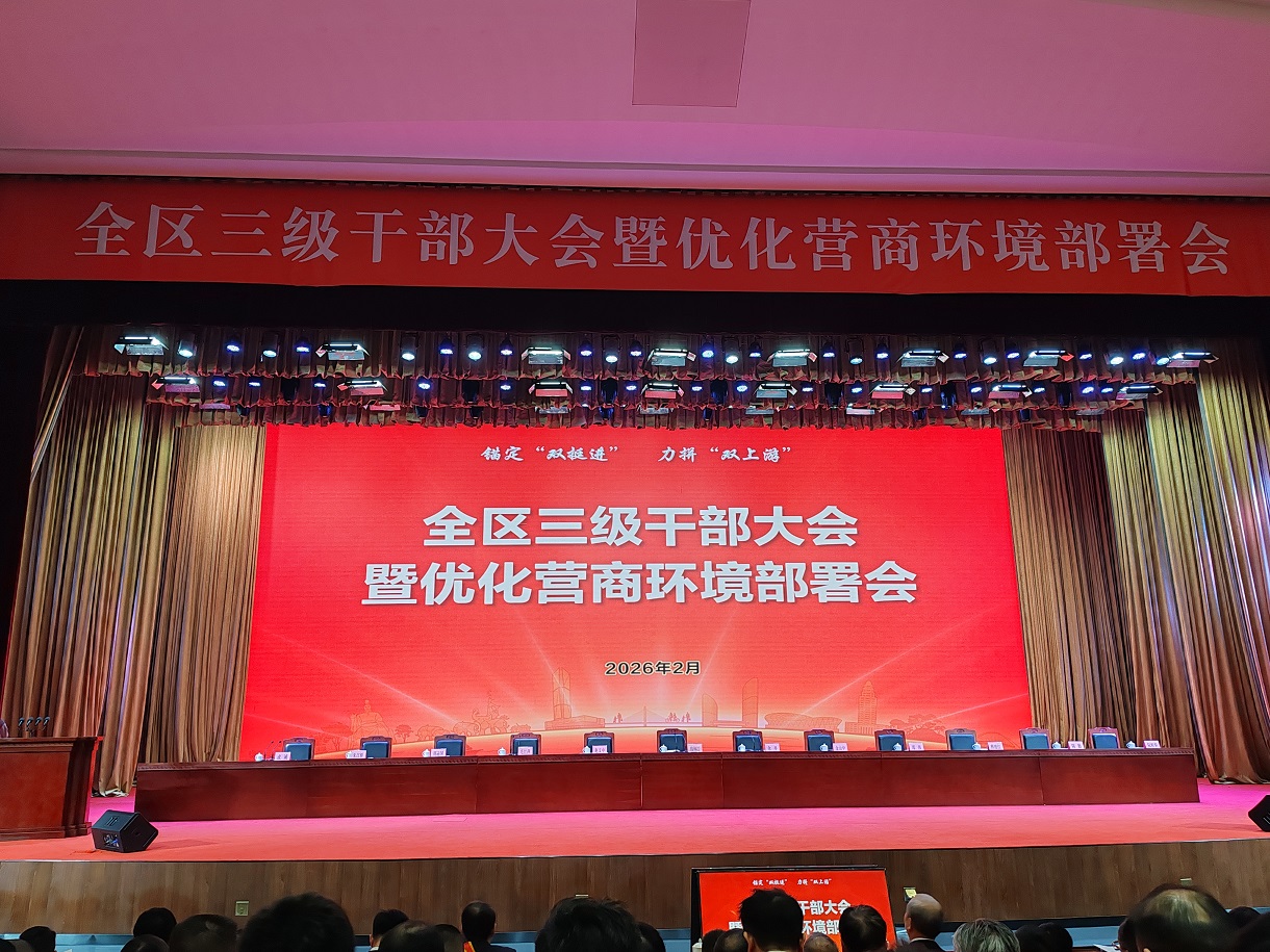 2月26日下午,全區(qū)三級(jí)干部大會(huì)暨優(yōu)化營(yíng)商環(huán)境部署會(huì)召開(kāi),會(huì)議錨定“雙挺近”、力拼“雙上游”,表彰先進(jìn)集體與個(gè)人,吹響奮進(jìn)“十五五”號(hào)角。
