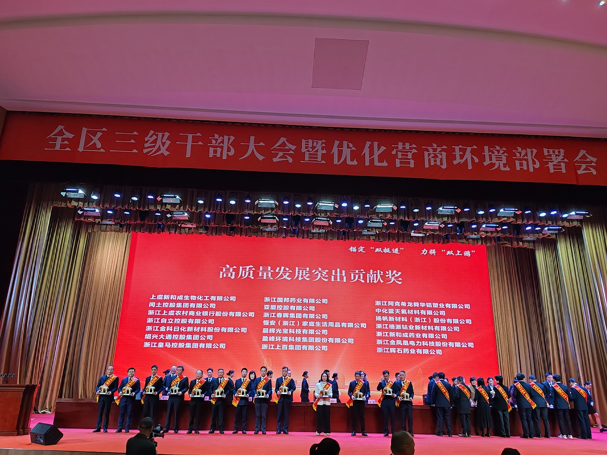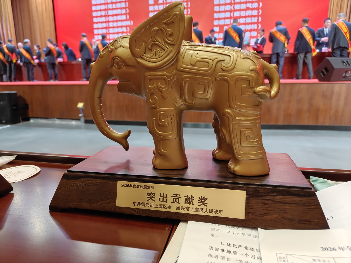 揚(yáng)帆新材料(浙江)股份有限公司樊彬董事長(zhǎng)、陶明總裁參會(huì)并登臺(tái)領(lǐng)獎(jiǎng)。公司憑借2025年優(yōu)異表現(xiàn),榮獲2025年度高質(zhì)量發(fā)展突出貢獻(xiàn)獎(jiǎng),樊彬董事長(zhǎng)上臺(tái)受獎(jiǎng);同時(shí),揚(yáng)帆新材下屬省級(jí)企業(yè)研究院斬獲高質(zhì)量發(fā)展“兩新融合”新銳獎(jiǎng),由陶明總裁登臺(tái)領(lǐng)獎(jiǎng)。